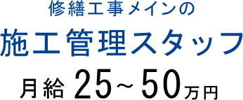 | 給与 | 【基本給】月給250,000円~500,000円 通勤手当、家族手当、役職手当、資格手当、住宅手当、時間外手当あり ※経験・年齢によって月給は変わります。 【年収例】 20代前半 300万円 20代後半 500万円 30代前半 550万円 |
